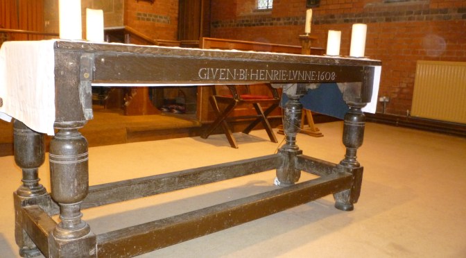 We have come a little closer to solving the mystery of the old wooden altar at St Mark’s. The altar is Tudor in style and has an inscription “GIVEN BI HENRIE LVNNE 1608”, but St Mark’s was built in 1883, 275 years later.