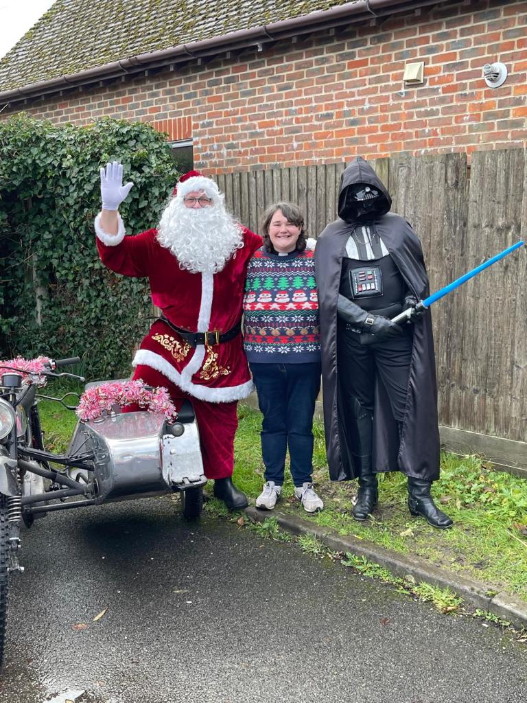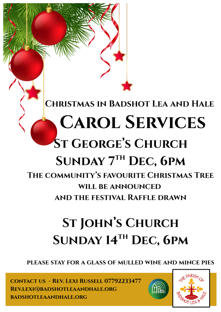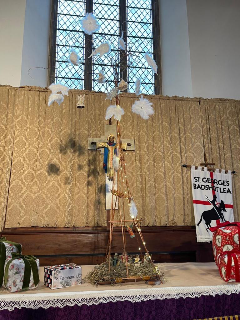 John, who was wearing a chasuble and stole from Crookham Parish, was joined by two bishops – the current Bishop of Dorking, Rt Rev’d Paul Davies, and a former one, Rt Rev’d Ian Brackley – and at least 10 other priests from throughout his career including two rectors of this parish – Rev’d Lexi Russell, the current incumbent, and Rev’d John Page who was rector before Alan and Lesley Crawley. Deaconing for his was Rev’d Ros Fox whom John had recommended for ordination on two occasions when she was a member of his congregation at Christ Church, Crookham, and who was finally ordained this summer.