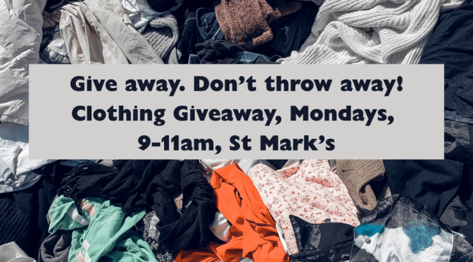 Every Monday, except bank holidays, St Mark’s Church is filled with rails and tables bursting with clothes and shoes, all of them available free to anyone who wants them.